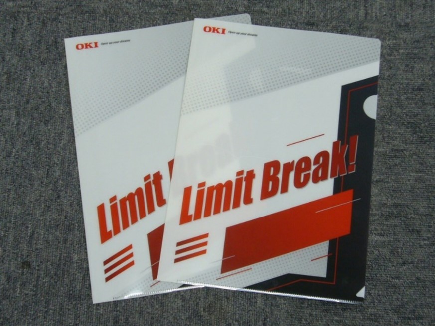 「限界突破(Limit Break)」のスローガンを掲げて、ダブル優勝を記念したクリアファイルを作成。クリアファイルには、デザインチームによるプロジェクトへの魂が込められています。